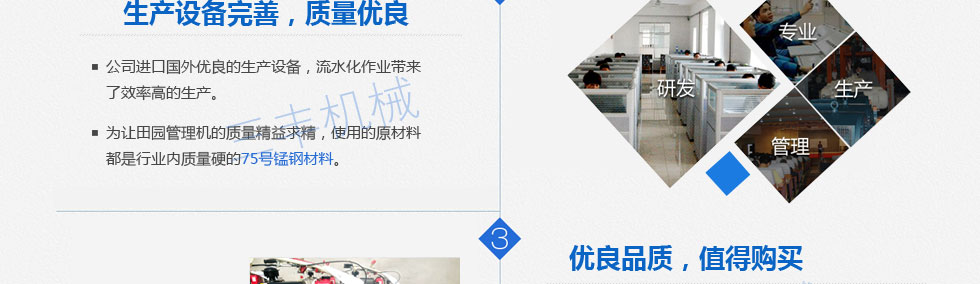 公司堅持綠色環(huán)保、智能制造的目標(biāo)定位,大力弘揚工匠精神,微耕機 以具有豐富實踐經(jīng)驗的高級工程師為主體的技術(shù)管理隊伍。